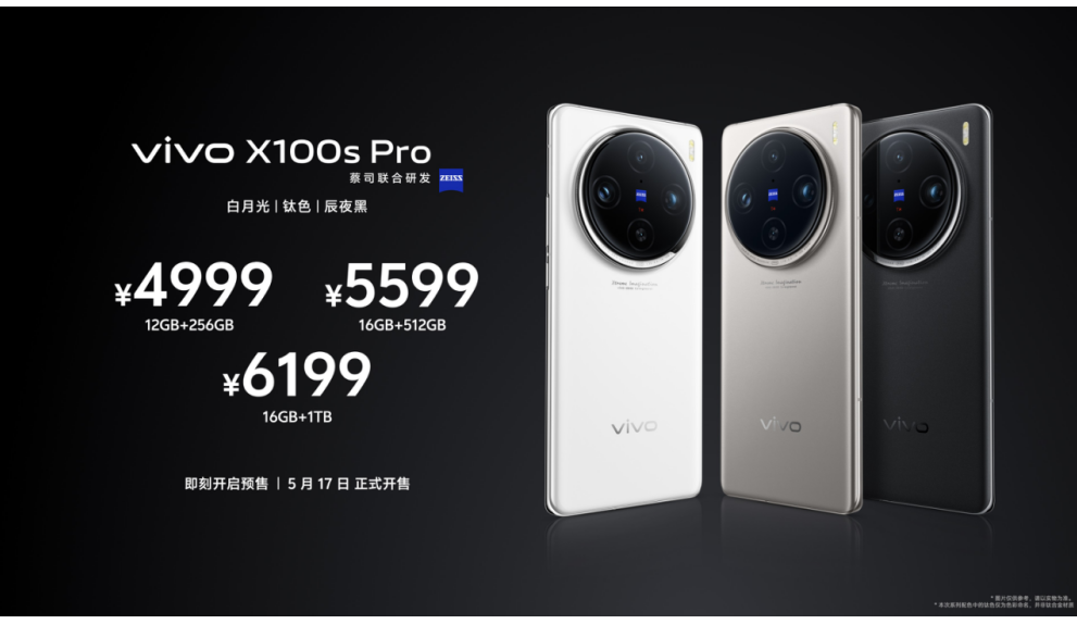 vivo X100系列三款新品價格在此次發布會上公布,其中vivo X100 Ultra有12GB+256GB、16GB+512GB、16GB+1TB(衛星通信)版本,售價分別為6499元、7299元、7999元;vivo X100s有12GB+256GB、16GB+256GB、16GB+512GB、16GB+1TB版本,售價分別為3999元、4399元、4699元、5199元;vivo X100s Pro有12GB+256GB、16GB+512GB、16GB+1TB版本,售價分別為4999元、5599元、6199元。