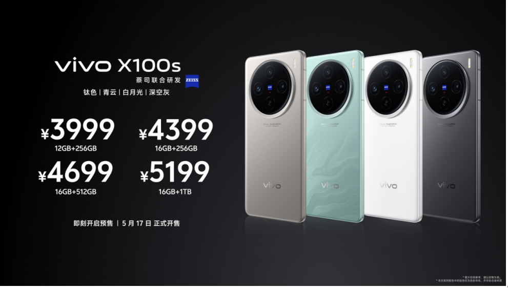 飛象網訊 5月13日,vivo X100系列再發三款旗艦新品,包括vivo X100s、vivo X100s Pro和vivo X100 Ultra。其中,vivo X100 Ultra定位移動影像標桿,搭載蔡司2億APO超級長焦和一英寸云臺級主攝,起售價6499元。vivo X100s和vivo X100s Pro主打超薄直屏旗艦,同時擁有旗艦級影像體驗及天璣9300+強悍性能支持,起售價3999元。