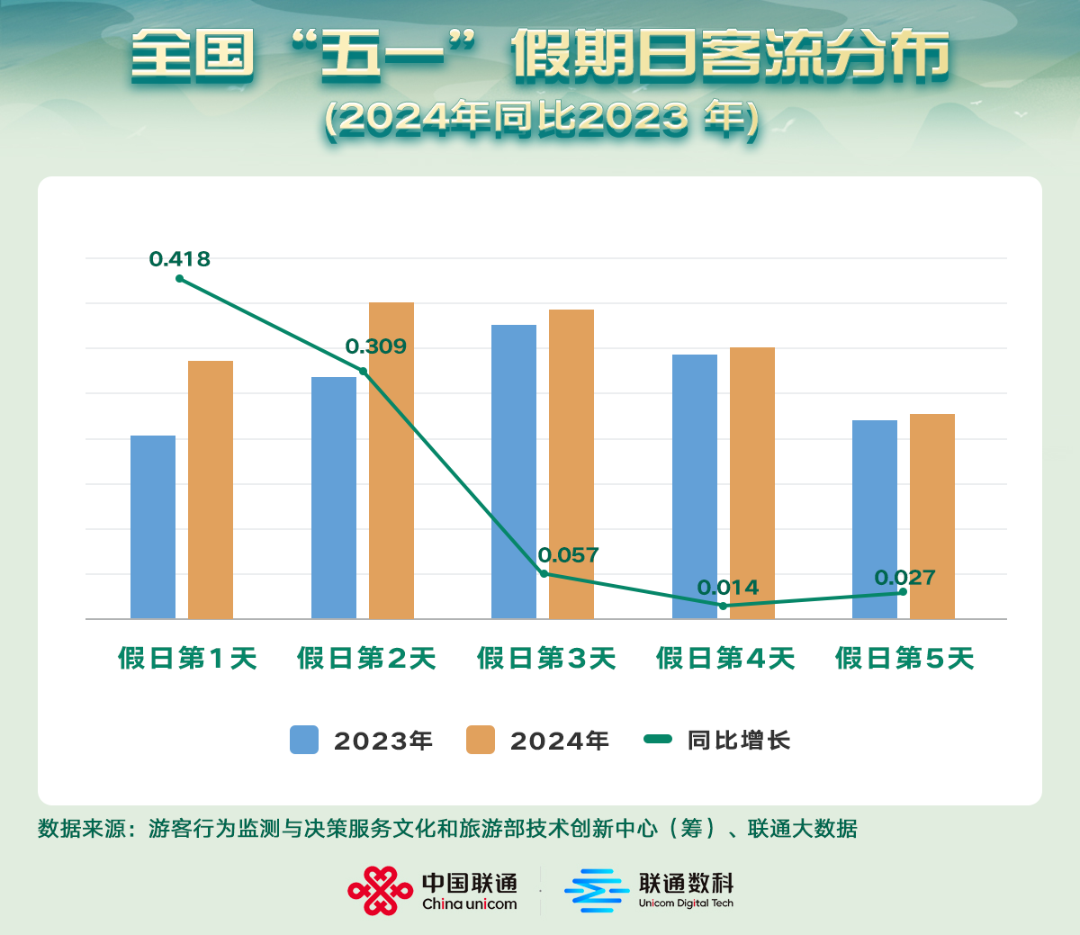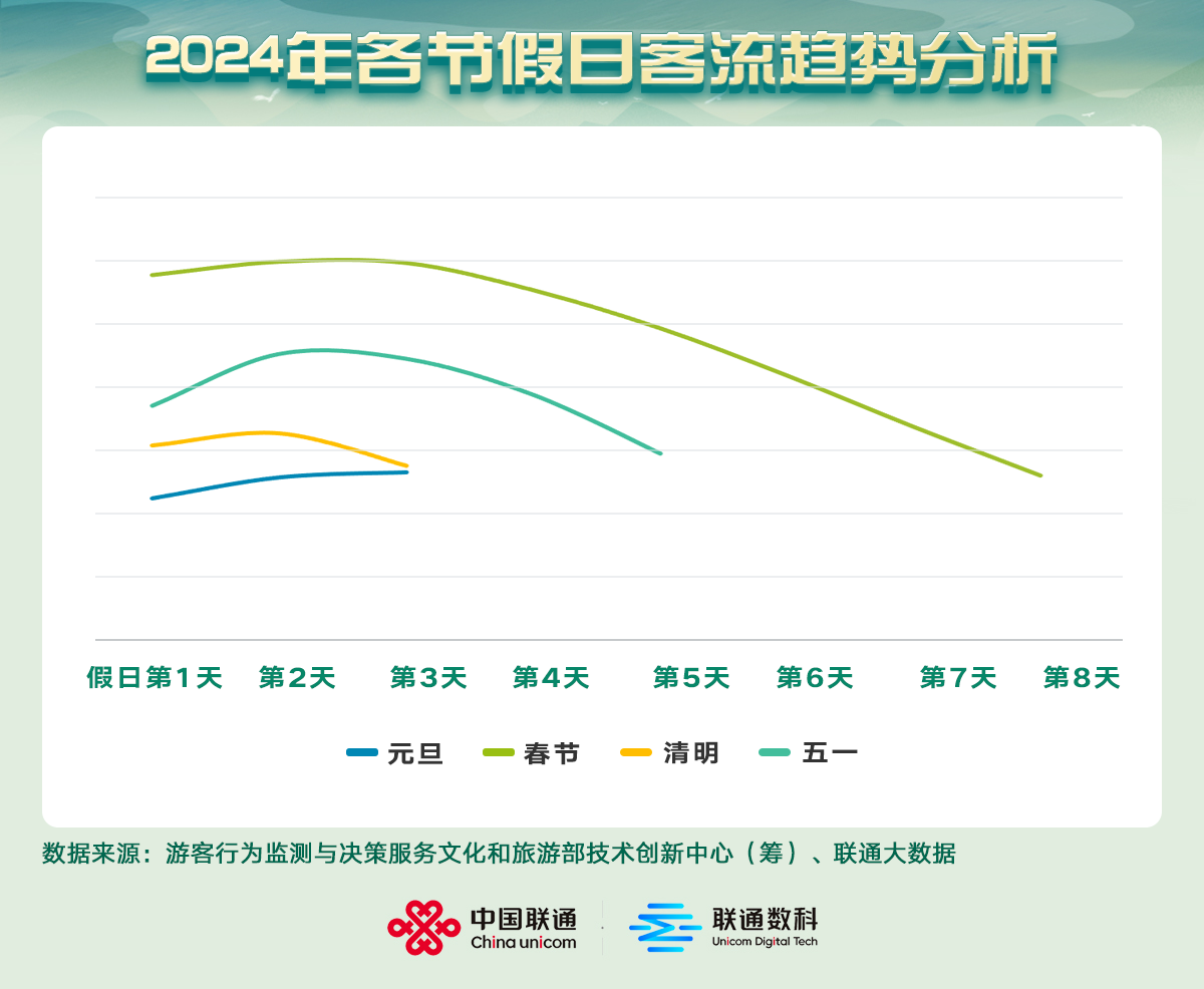 中國聯通大數據通過對2024年1月1日至5月5日的旅游市場抽樣數據進行監測,發現了這些新趨勢與高光時刻,一起來看看,或許能夠探索出新的目的地。