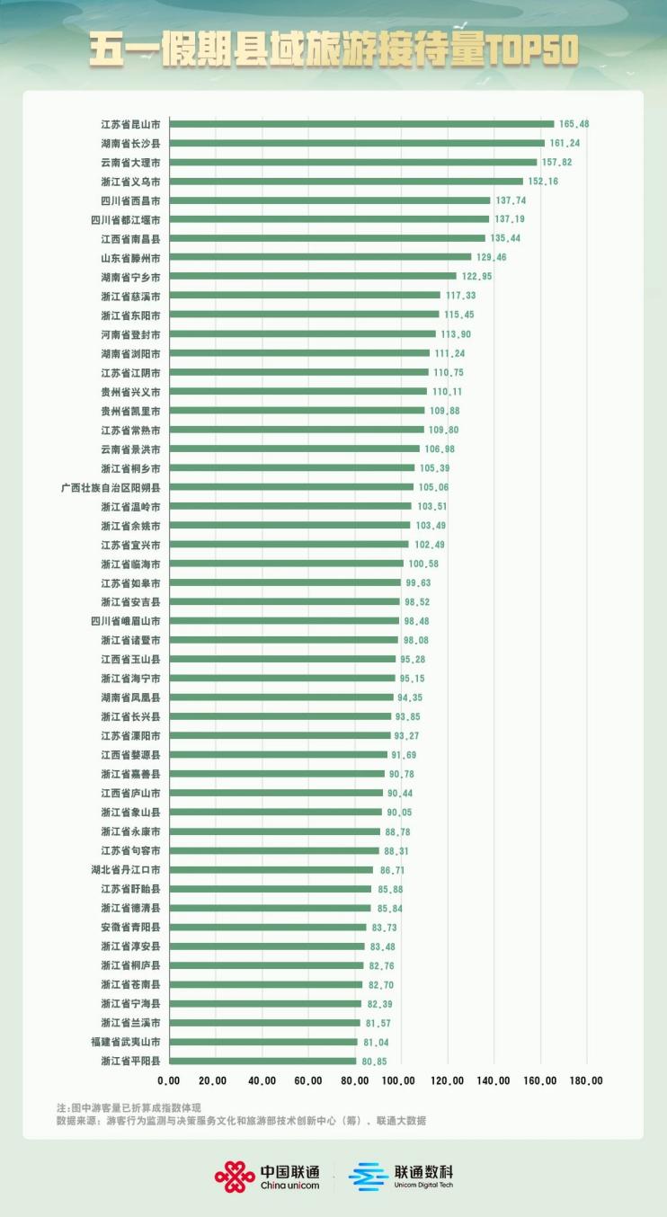 自然風光類、休閑度假類縣域頗受游客喜愛。聯通大數據顯示,旅游熱度排行榜中約50%的區縣均處于以自然風光聞名的江浙一帶,“詩畫浙江”、“江西風景獨好”是江浙縣域市場火熱的最好體現。