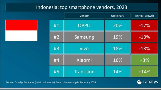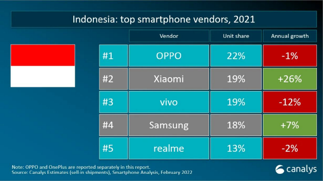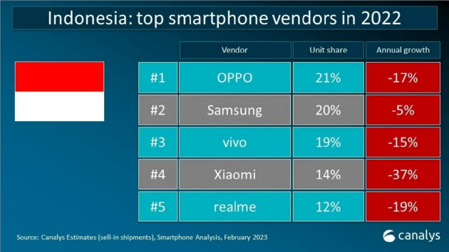 IDC:開年第一季度印尼手機市場強勁增長27.4%,OPPO位居第一
