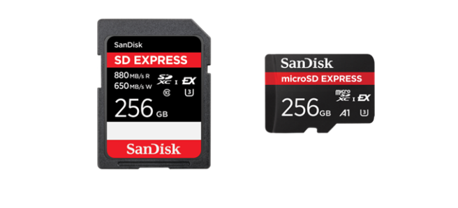 上圖從左到右依次為閃迪SD Express 存儲卡及閃迪移動microSD Express 存儲卡