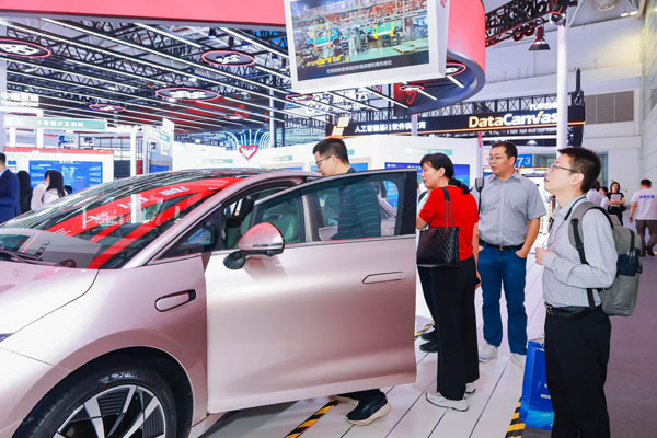 觀眾爭相體驗聯(lián)通云度汽車帶來的智能駕駛互動