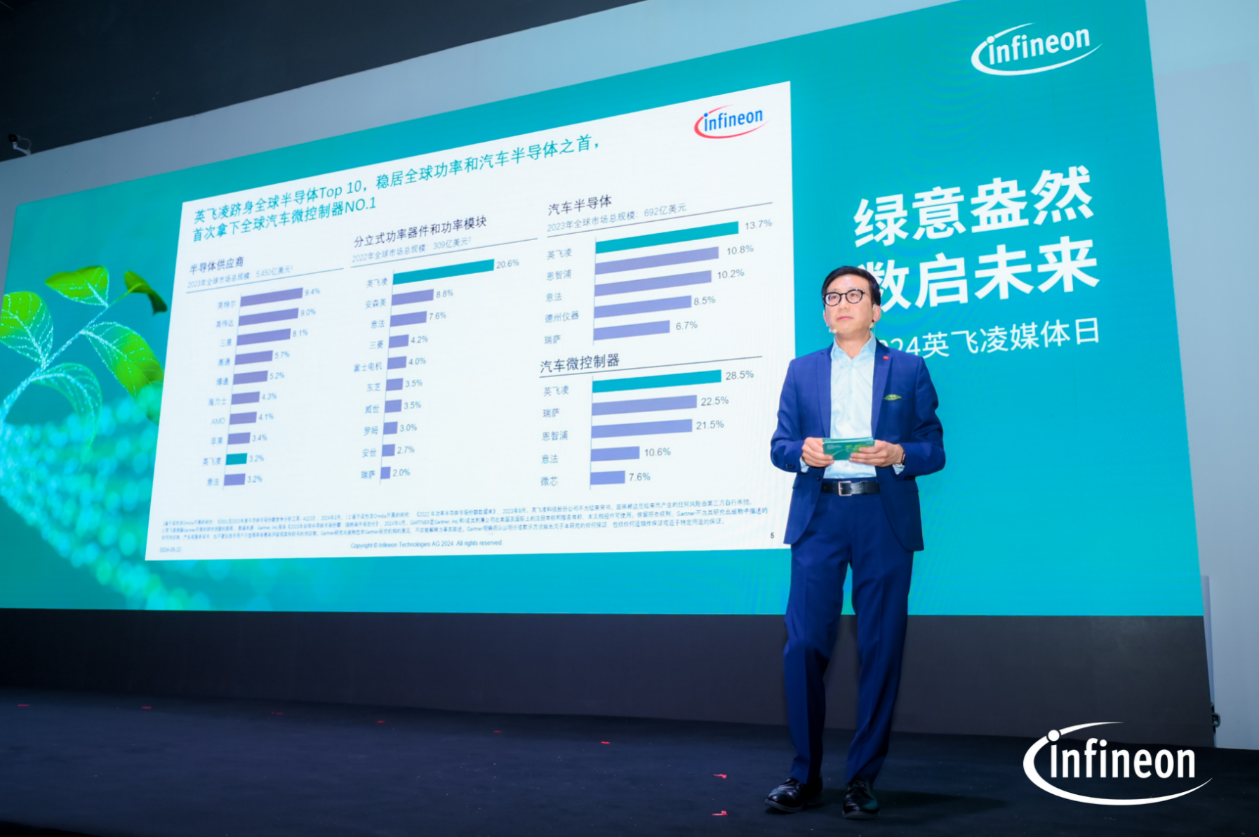 上述案例中,在有關未來與綠色的話題下,都有著英飛凌在背后的技術助力。不久前的2024英飛凌媒體日上,該公司更是用綠色裝點了整個會場,從來賓胸牌到會場的燈光,都在強調著此次“綠意盎然·數啟未來”的主題。