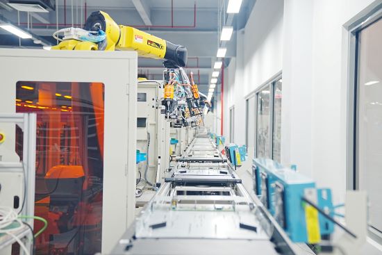 在整機車間,配備全自動化的組裝、測試、包裝一條流線體。其中,組裝由高精度關節機械臂完成,測試實現了流動中測試,為業界首創。據了解,智能工廠的多項產線設備都是銳捷設計開發,均為業內首創,具有銳捷知識產權。