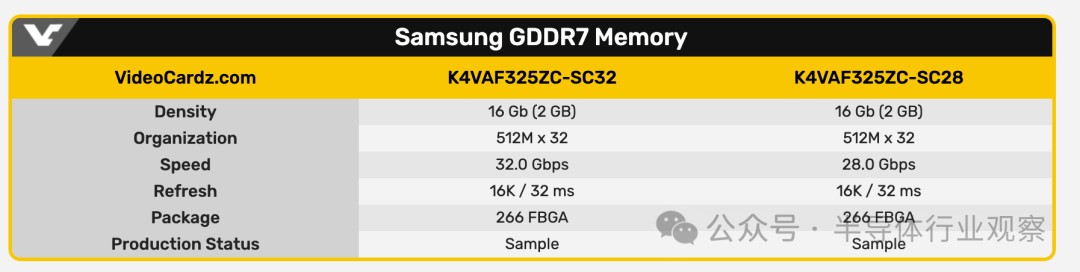 三星和SK海力士在今年3月份NVIDIA的GTC大會上均宣布了各家GDDR7的相關(guān)指標。兩家公司都展示了16Gb(2GB)密度的產(chǎn)品,24Gb(3GB)更高版本沒有在這一波浪潮中展現(xiàn)。