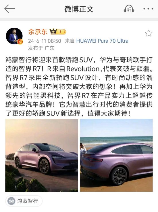 余承東正式官宣:智界R7亮相