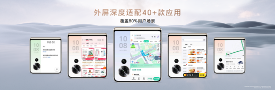 交互方面,榮耀Magic V Flip支持全屏顯示和分區(qū)顯示,應(yīng)用區(qū)接近內(nèi)屏的16:9比例,多數(shù)應(yīng)用都能直接適配。通知區(qū)可常顯時(shí)間、即時(shí)顯示消息等,既方便隨時(shí)查看又不干擾使用體驗(yàn)。在全屏桌面卡片功能幫助下,用戶可以單手快速直達(dá)高頻應(yīng)用。目前,外屏已支持超40款應(yīng)用,覆蓋80%的用戶使用場景,無論玩游戲、看視頻、聽音樂還是社交聊天,都能在不展開手機(jī)的情況下盡享便捷。