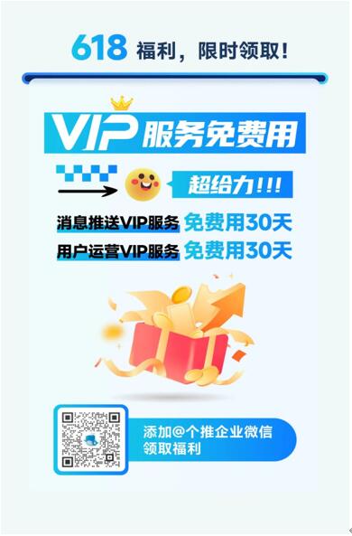 正值618大促,個推也為各位產品、運營和增長官們準備了專屬福利。個推用戶運營和消息推送兩大王牌產品的VIP服務免費用30天!