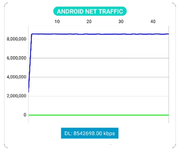 這次驗證利用了高頻段的800MHz帶寬,以及3.5GHz低頻段的100MHz帶寬,共同進行載波聚合,在搭載驍龍X80基帶和射頻系統的智能手機上,單用戶下行峰值速率超過8.5Gbps。