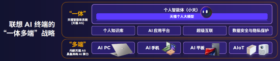 聯(lián)想的“一體多端”戰(zhàn)略的“一體”是“天禧智能體系統(tǒng)”——天禧AS,由聯(lián)想“小天”個人智能體,以及個人知識庫、AI應(yīng)用平臺、超級互聯(lián)、數(shù)據(jù)安全與隱私保護(hù)機(jī)制五個部分共同組成,系聯(lián)想自主研發(fā),構(gòu)成AI終端的“AI大腦”。
