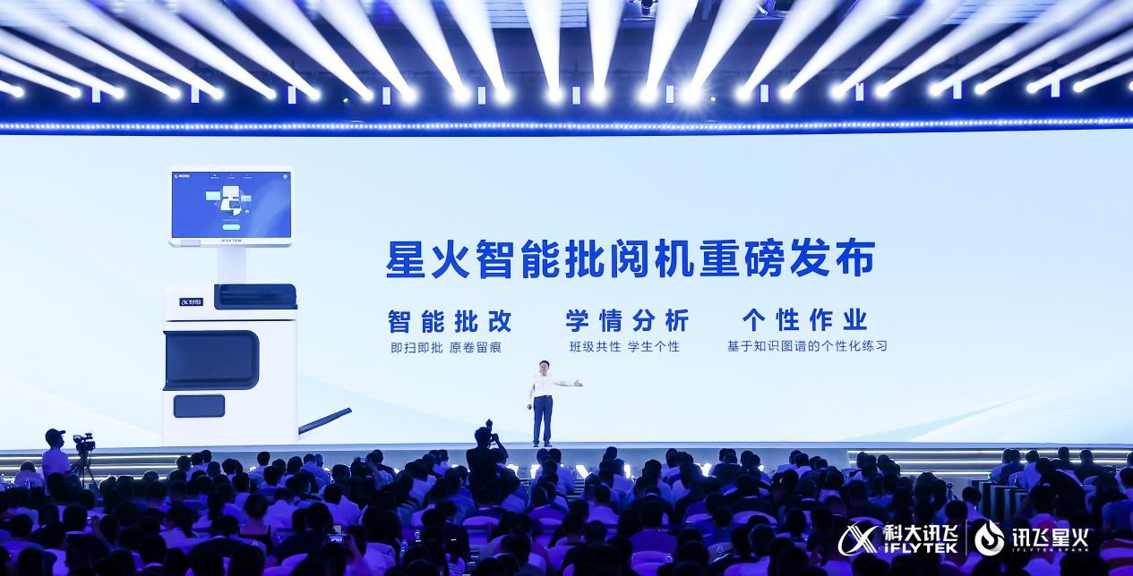 得益于底座大模型的升級和面向教育復雜場景的圖文識別效果進一步提升,科大訊飛發布首款星火智能批閱機,它集智能批改、精準學情、個性學習于一體,它支持自由排版,不限紙張大小的作業,在支持多學科多題型智能批改的同時,還能即時生成多維學情報告,還為老師作業講評和面批輔導提供了素材。劉聰在現場演示了星火智能批閱機批改作業的全流程,15份學生作業半分鐘就能批改完成,批改模擬了真人筆跡,和老師平時批改作業幾乎一樣。