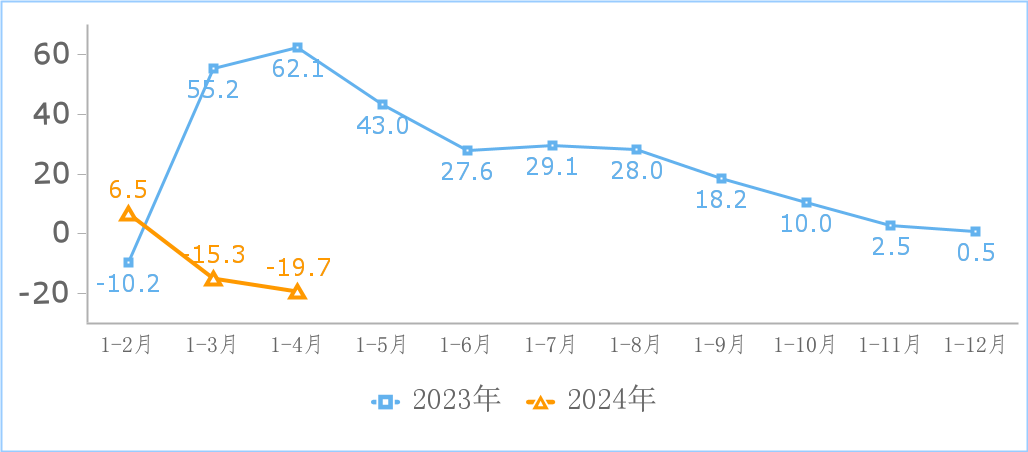 圖4 2024年1—4月份分地區互聯網業務收入增長情況
