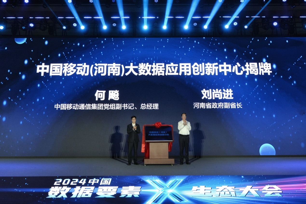 6月30日上午,在2024中國“數據要素×”生態大會上,河南省人民政府副省長劉尚進、中國移動總經理何飚共同為中國移動(河南)大數據應用創新中心揭牌。