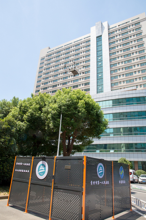 7月22日下午2點58分,一架載有醫療物資的無人機從常州市第一人民醫院(以下簡稱“一院”)起飛,按照設定的航線飛行7分鐘后,平穩降落在常州市新北區三井人民醫院(以下簡稱“三井醫院”)指定位置,完成了空中運輸任務。