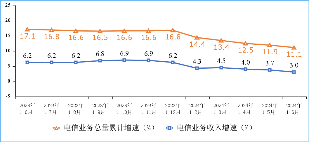 飛象網訊(致新/文)7月23日消息,工信部今日發布《2024年上半年通信業經濟運行情況》。2024年上半年,通信行業運行基本平穩,電信業務收入累計完成8941億元,同比增長3%。按照上年不變價計算的電信業務總量同比增長11.1%。