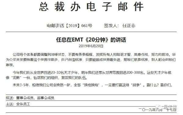 據悉,華為“天才少年”項目,是2019年任正非發(fā)起的用頂級挑戰(zhàn)和頂級薪酬去吸引頂尖人才的項目。2019年6月,華為內部的心聲社區(qū)掛出任正非6月20日在公司EMT(經營管理團隊)《20分鐘》的講話。