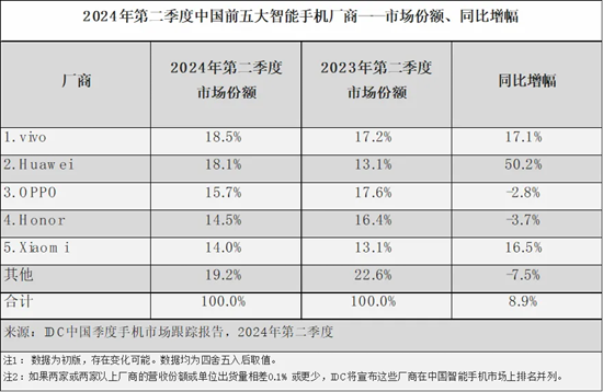 IDC發布的最新手機季度跟蹤報告顯示,2024年第二季度,中國智能手機市場出貨量約為7158萬臺,同比增長8.9%,延續增長勢頭。