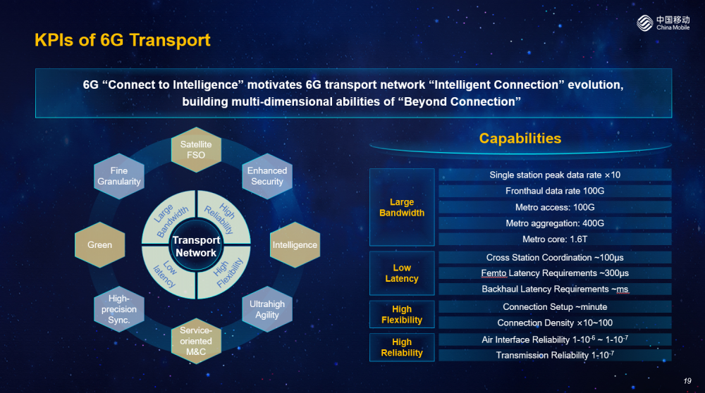 圖3:6G承載的光網絡的關鍵能力和性能指標(摘自中國移動專家的報告)