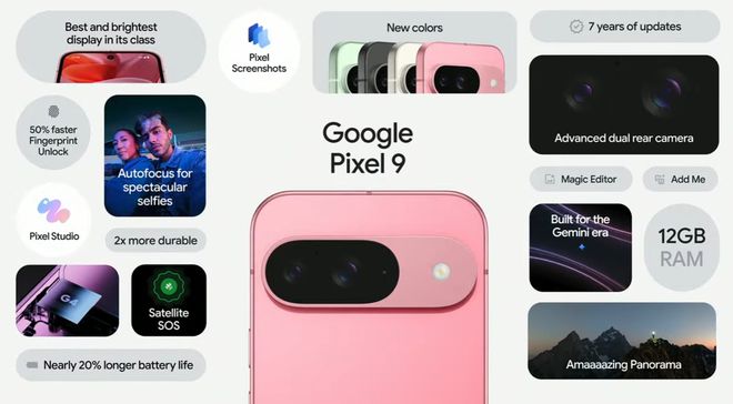 售價方面,Pixel 9價格為799美元(約合人民幣5717元)起步,而Pixel 9 Pro和Pixel 9 Pro XL的起售價分別為999美元和1099美元。