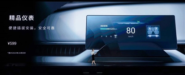 在發布會上,小鵬還為 MONA M03 提供了多款配件,例如 169 元的可調頭頸枕、179 元的記憶棉腰靠,399 元的冰晶遮陽簾,99 元的扶手香氛儲物盒,還有一款 599 元的精品儀表盤。