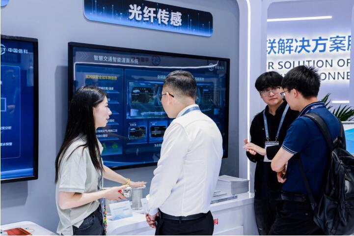 本次展會上,中國信科重點展示了光纖傳感+系列解決方案。該系列解決方案融合了波分、時分混合復用傳感信號解調技術,實現了對光纜沿線溫度、振動及應變等數據的精準多參量感知。這一技術的突破,為傳統大型基礎設施大規模、長距離、高精度、高可靠性和快速響應地在線監測提供了強有力的支持。