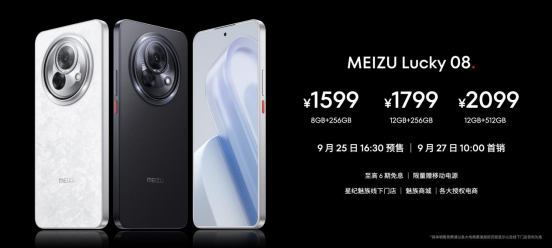 即日起,魅族 Lucky 08 在線上線下全渠道開啟預售,并將于 9 月 27 日 10:00 現貨開售,參與京東先人一步下單可現貨嘗鮮。同時,參與京東小魔方新品日、天貓品牌超級會員日和抖音超級新品計劃,將有更多驚喜體驗。