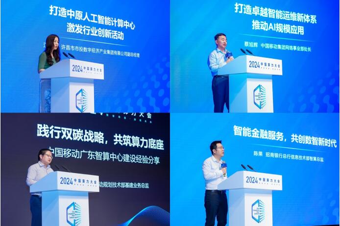 主題演講環節,許昌市市投數字經濟產業集團有限公司副總經理江芊林、中國移動集團網絡事業部處長蔡旭輝、廣東移動規劃技術部基建業務總監郭光鑫、招商銀行總行信息技術部智算總監陳果,分別從人工智能計算中心的全棧建設、運營商超大規模集群的運營運維、智算中心升級改造、金融業務在AI領域的應用落地等角度,分享了與華為在算力集成建設領域的實踐經驗。依托華為的算力平臺服務,企業有效解決了智算中心規劃和改造難題,在高效運營的保駕護航下,真正實現了AI應用的場景化落地,極大加速了企業的智能化轉型步伐。