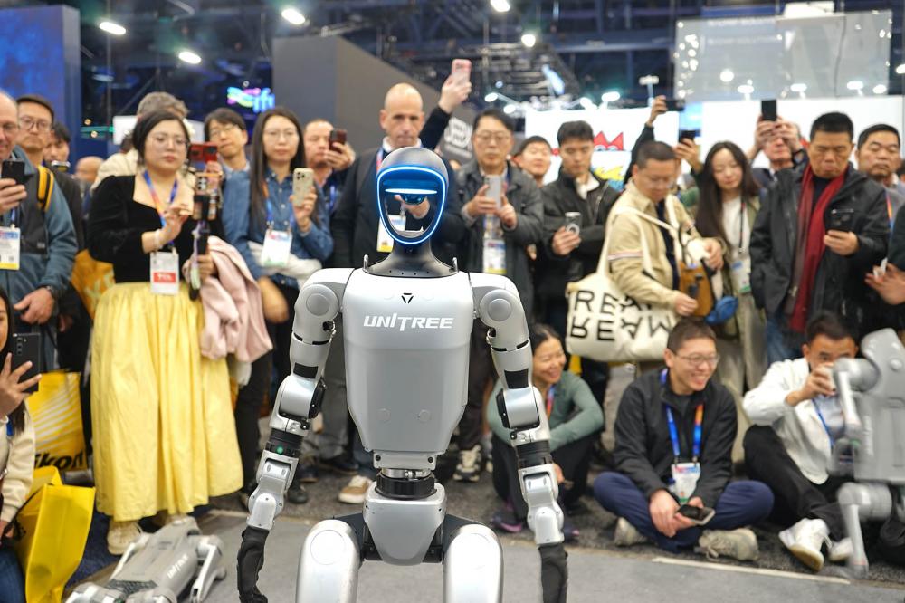 展出半天樣機就已經“預訂完了”的宇樹科技旗下機器人,是國內較早把大型機器人類目價格降到10萬元以下的廠商。其展示的如機器狗等產品,既能適應家庭陪伴場景,也能應用在工業、應急等場景中。