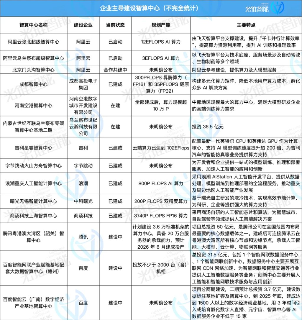 這其中既有政府主導(dǎo)建設(shè)項目,也有以阿里云、百度智能云、商湯等企業(yè)為主開始投資建設(shè)的智算中心,更有一些跨界企業(yè)看到其中的機會從而邁入這一賽道。