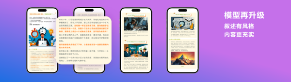 訊飛繪文始終堅持技術迭代與產品創新雙輪驅動,持續為用戶帶去超乎預期的驚喜體驗。其全新的寫作模型讓文章風格獨特、內容豐富。新增的“輕圖文”功能,只需輸入主題就能生成具有視覺沖擊力的組圖,助力內容傳播。無論是業務專家轉型為內容創作者,還是內容專家產出高質量專業內容,訊飛繪文都能發揮重要作用,尤其幫助粉絲基數<1萬的博主們顯著提升了內容影響力。