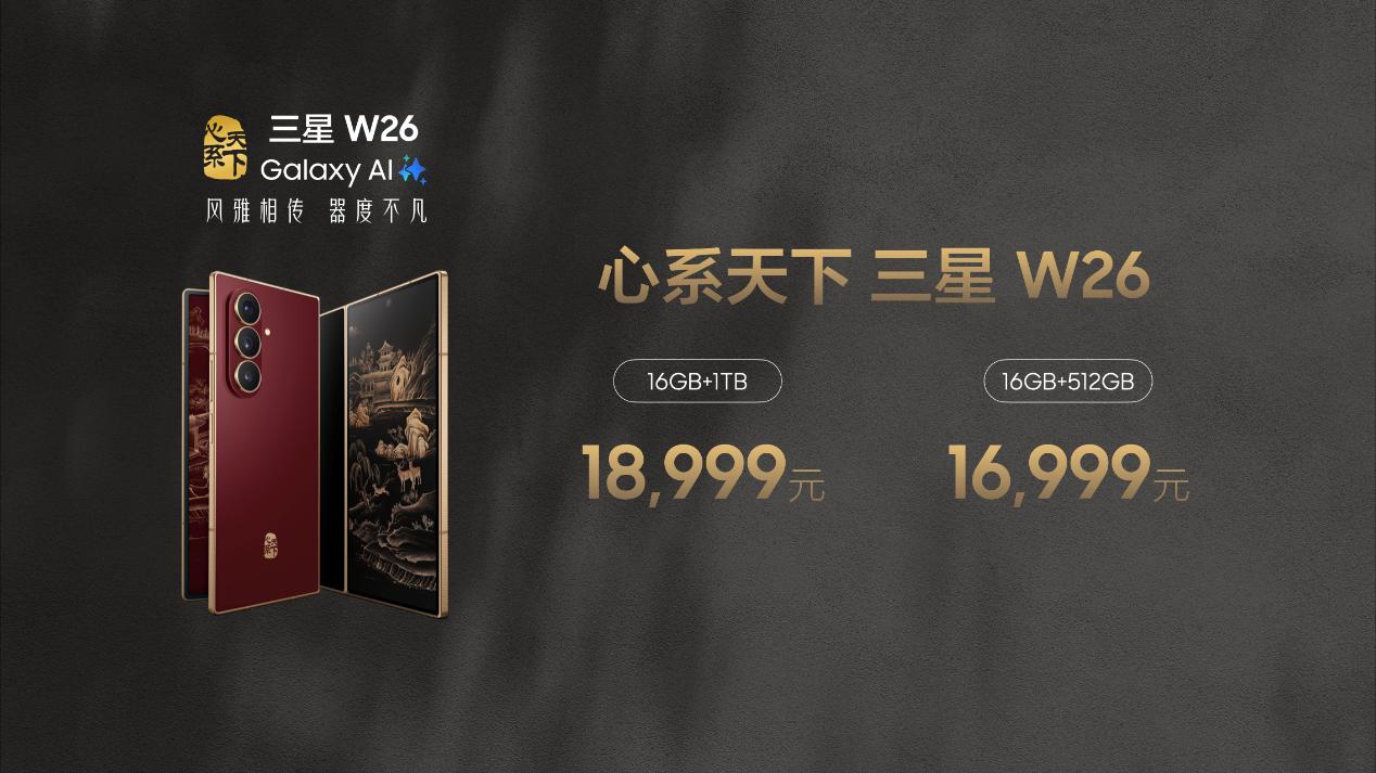 心系天下三星W26 16GB+512GB版本建議零售價16999元,16GB+1TB版本建議零售價18999元。10月11日17點,三星W26將在抖音心系天下旗艦店、三星商城、三星京東自營官方旗艦店、天貓三星官方旗艦店、三星手機蘇寧自營旗艦店、抖音三星官網旗艦店等線上渠道、線下授權三星門店以及其他授權門店正式開啟預約。10月17日全渠道正式開售。