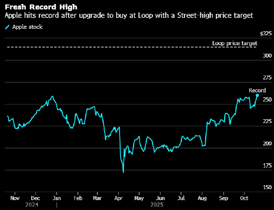 蘋果股價上漲3.9%,至262.24美元,突破自去年12月以來的歷史高點。今年多數時間,蘋果在標普500成分股中表現一直低迷,4月時跌幅一度達到31%。但自那以來,股價已累計上漲超過50%,并在9月下旬回到去年年末收盤位之上。