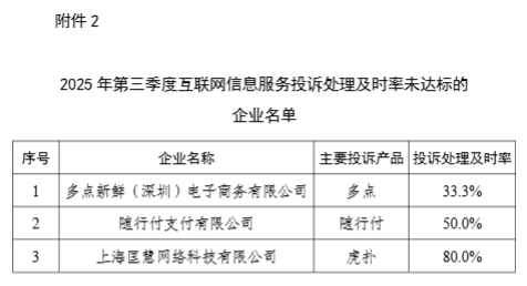 在互聯網信息服務投訴方面,2025年第三季度,互聯網信息服務投訴平臺收到的互聯網用戶投訴中,服務功能類投訴占比47.2%,客服渠道類投訴占比18.2%,個人信息保護類投訴占比17.9%,其他類投訴占比16.7%。在接入平臺的178家互聯網企業中,多點等3家企業投訴處理及時率較低,工信部已督促相關企業妥善處理用戶反映的問題。