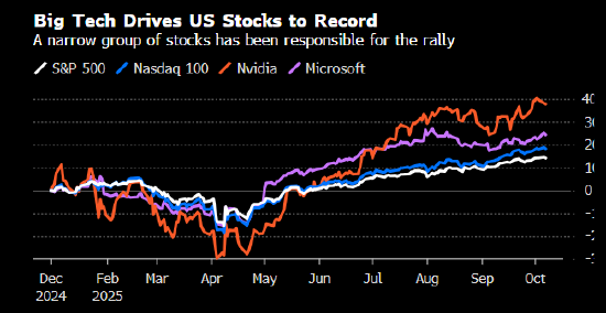 隨著美國股市的創紀錄上漲推高估值,圍繞AI泡沫的擔憂升溫。科技股權重較高的納斯達克(23043.3778, 255.02, 1.12%)100指數今年上漲18%,預期市盈率為28倍,而其10年平均水平為23倍。
