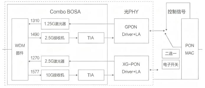 我們首先簡(jiǎn)單來看一下Combo FTTR器件技術(shù):與傳統(tǒng)GPON BOSA或10G PON BOSA相比,F(xiàn)TTR+上聯(lián)接口BOSA通過內(nèi)部WDM將收發(fā)功能進(jìn)行合分波集成,形成小型化Combo光器件。這種設(shè)計(jì)優(yōu)化了器件結(jié)構(gòu),提高了集成度。同時(shí),BOB方案的應(yīng)用使得光PHY與MAC直接相連,簡(jiǎn)化了信號(hào)處理流程。一個(gè)Combo PON BOSA同時(shí)包含了GPON和10G PON的兩個(gè)物理通道,為FTTR主設(shè)備提供了豐富的物理接口選擇。