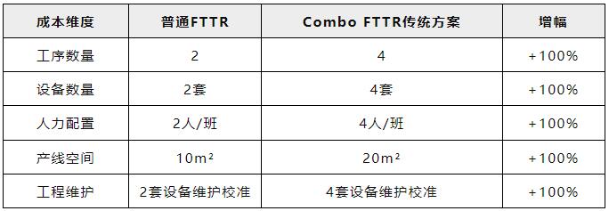 單模FTTR ONU口僅需2道工序。Combo FTTR因雙模式都需要獨(dú)立測(cè)試,工序暴增至4步。工序數(shù)量增加2個(gè),線體長(zhǎng)度同步增加4米以上,配套的質(zhì)檢、工藝管理等復(fù)雜度成倍增加,影響不容小覷。