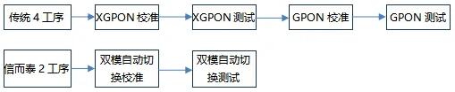 ● 極限優(yōu)化:產(chǎn)線生產(chǎn)工藝流程成熟以后,甚至可進(jìn)一步合并為1工序完成XGPON&GPON雙模校準(zhǔn)&測(cè)試