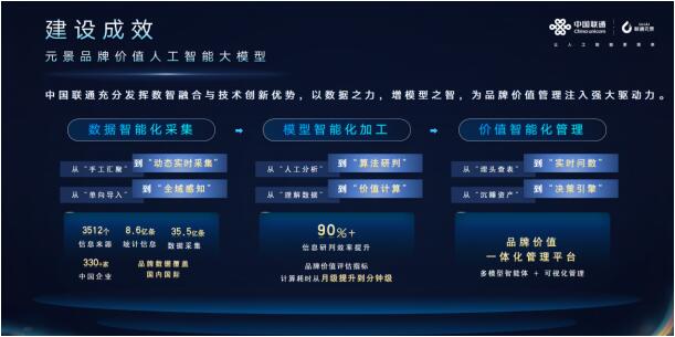 元景品牌價值人工智能大模型針對品牌建設中品牌價值評估量化“難”、資源要素配置指導“難”、品牌國際化精準作戰(zhàn)“難”三大難題,依托中國聯(lián)通數(shù)智融合、自主創(chuàng)新的經(jīng)驗,發(fā)揮大數(shù)據(jù)與人工智能領域優(yōu)勢,研發(fā)了管理駕駛艙、企業(yè)決策站、指標導航儀三大智能化解決方案,構(gòu)建了企業(yè)品牌管理的數(shù)智化核心支撐平臺,實現(xiàn)了“讀得懂財報、算得出價值、說得清歸因”的全流程能力。