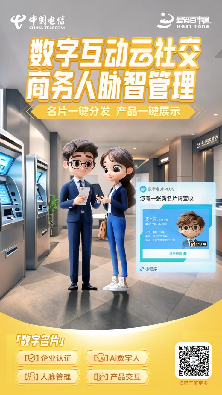 中國電信數字名片不僅僅是一張社交名片,更是企業邁向數字化、智能化運營的有力工具。未來,號百公司將繼續堅持以客戶需求為導向,通過持續的技術創新和服務優化,不斷拓展數字名片與更多企業應用場景深度融合,助力企業在數字經濟時代實現高質量發展。