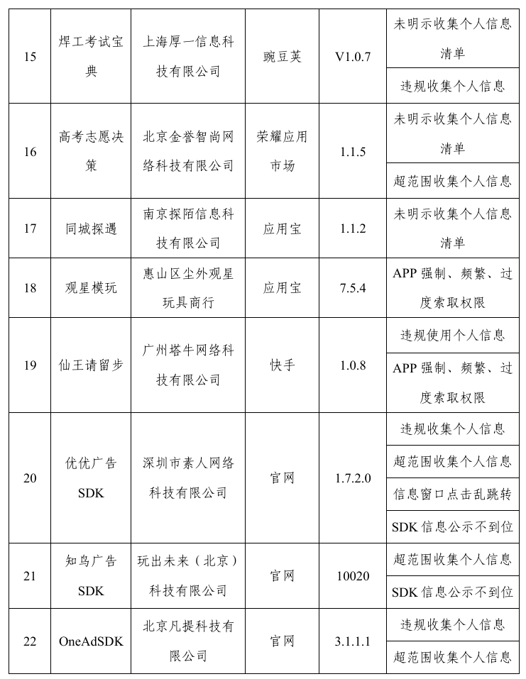 工信部通報24款侵害用戶權益行為APP(SDK)