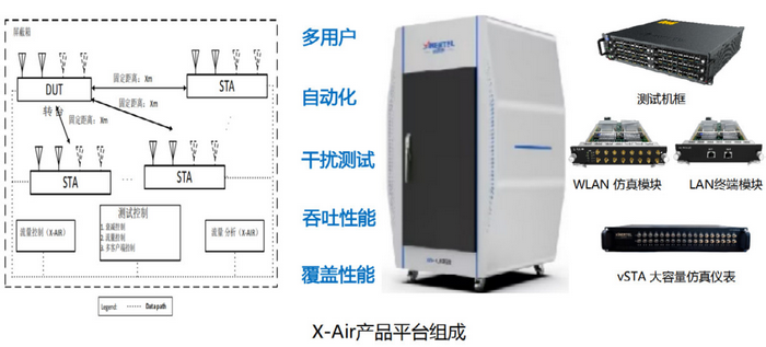 信而泰針對WiFi7高吞吐、低時延、大并發、抗干擾、高可靠等技術特性自主研發了X-Air系列產品,其是面向訪問接入點(AP)、家庭網關及 WLAN 系統的專業測試設備,憑借真實多終端模擬與真實4-7 層應用模擬,可以精準衡量WLAN設備的基本性能、功能完整性與長期穩定性。