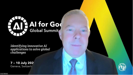 致辭環節,國際電信聯盟(ITU)標準化戰略部部長、AI for Good峰會總負責人Frederic Werner在視頻致辭中表示,中國是全球人工智能發展的重要參與者和貢獻者,國際電聯正在積極推動人工智能技術普惠和應用落地,希望與中國在醫療、工業、教育等領域展開更多合作,共同推動AI for Good愿景實現。