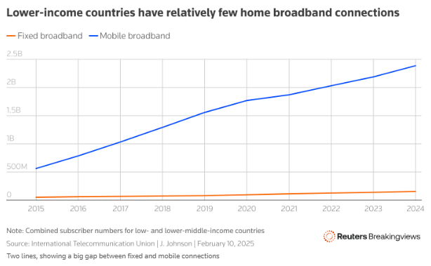 然而,電信行業(yè)樂觀人士的論點也存在漏洞。首先,他們忽略了全球一些最大的電信市場仍缺乏足夠的家庭寬帶服務(wù)。以印度為例,根據(jù)該國電信監(jiān)管機構(gòu)的數(shù)據(jù),印度僅有4100萬固定互聯(lián)網(wǎng)用戶,而無線用戶高達9.04億。換句話說,大多數(shù)人依賴移動數(shù)據(jù)上網(wǎng),這意味著像星鏈這樣的家庭寬帶提供商在市場上存在巨大機會。