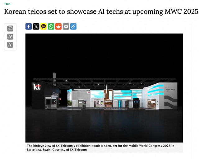 2月24日消息,據(jù)韓聯(lián)社報(bào)道,韓國三大移動運(yùn)營商SK Telecom、KT和LG Uplus將于下個月在西班牙巴塞羅那舉行的世界移動通信大會(MWC 2025)上展示其最新的人工智能(AI)技術(shù)。此次展會將于2月25日開幕,為期四天,是全球科技領(lǐng)袖展示尖端創(chuàng)新成果的重要平臺。