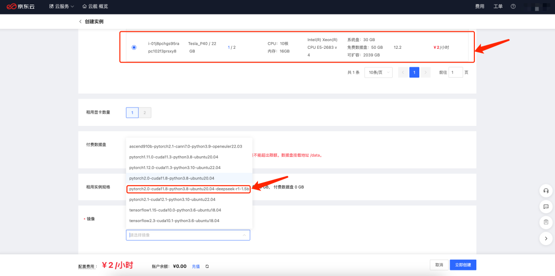 2、選擇資源規格以及對應帶有 deepseek 模型的鏡像
