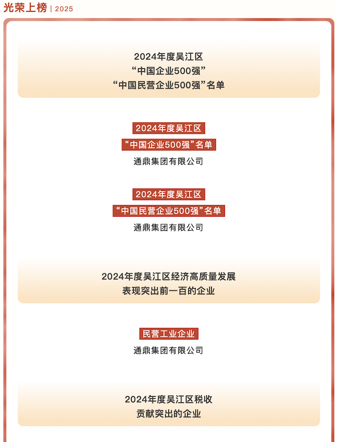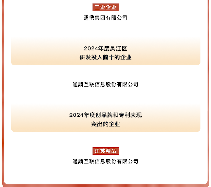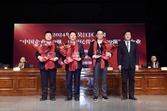 會上宣讀了關于對2024年度為全區經濟高質量發展作出突出貢獻的單位進行表揚的決定。通鼎集團光榮上榜2024年度吳江區“中國企業500強”、“中國民營企業500強”企業等多項榜單,通鼎互聯榮獲2024年度吳江區研發投入前十企業、2024年度創品牌和專利表現突出的企業。
