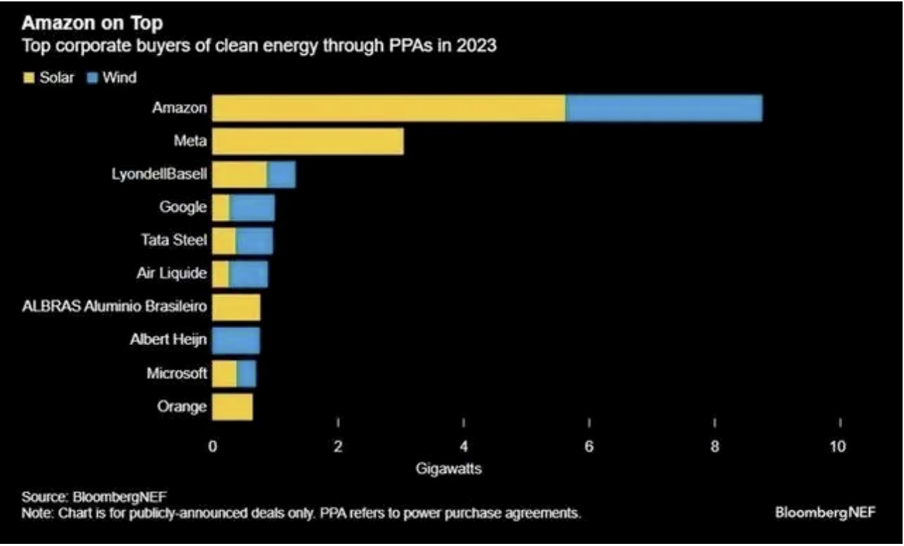 圖2 全球企業可再生能源購電協議(PPA)亞馬遜位居榜首