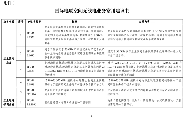 第十四條對于衛星地球探測(無源)、空間研究(無源)業務,無需建立國內協調列表及開展國內協調。