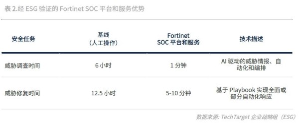 運營成本節省。Fortinet的自動化SOC解決方案高度自動化、智能化,顯著降低了人力需求。據ESG報告,部署EDP技術的組織,單次事件平均耗時銳減至約14%(節省86%時間),提高了處理效率,降低了運營成本。同時,Fortinet的托管服務也提供了經濟高效的安全運營方式。